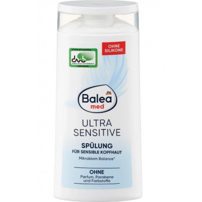 Кондиционер для волос Balea MED Ultra Sensitive, предназначенный для чувствительной кожи головы, обеспечивает деликатный уход.